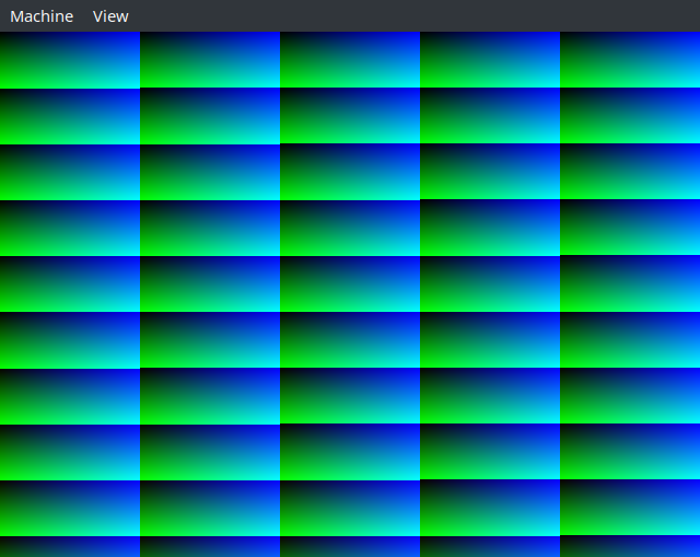 We now have a 'framebuffer' that can receive write(2) from userspace, and will forward the data as-is to a PCI-e device using DMA; we can cheat a little bit to pretend we have a working GPU, by hooking the card's buffer to QEMU's console output: